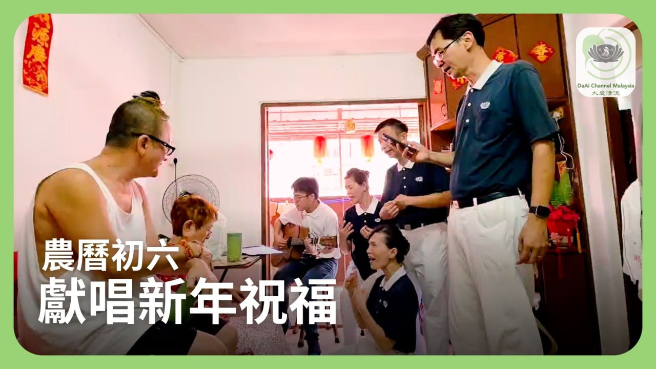 檳城斯里尼蒙慈濟生命關懷團隊的新春歌曲送愛來到第四年,這一次有30位志工和4位吉他手走進8位照顧戶住家,在吉他的伴奏下,為他們獻唱新春歌曲,把新春氣氛帶入照顧戶家裡。