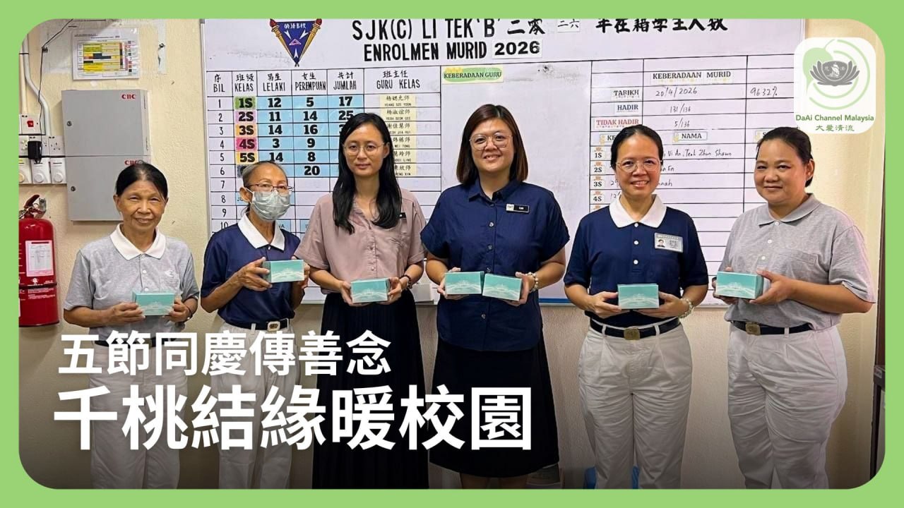 檳城慈濟志工提前走入校園,走訪一百多所中小學、幼兒園與安親班,送出超過五千顆手作壽桃,將祝福與感恩,傳遞到教職人員心中,也邀約大眾共同參與浴佛盛典,讓善的力量,在社區持續延伸。